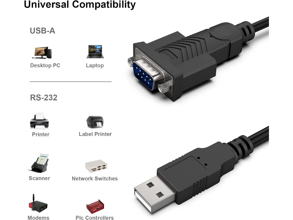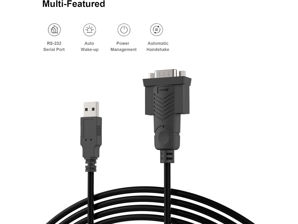 BENFEI USB na sériový RS-232 adaptér (samec, 9-pin, 1,8 m) je praktický nástroj pro propojení zařízení se sériovým portem s moderními počítači nebo notebooky. Díky robustnímu provedení, spolehlivému chipsetu a široké kompatibilitě je ideální pro průmyslové, laboratorní a kancelářské aplikace.