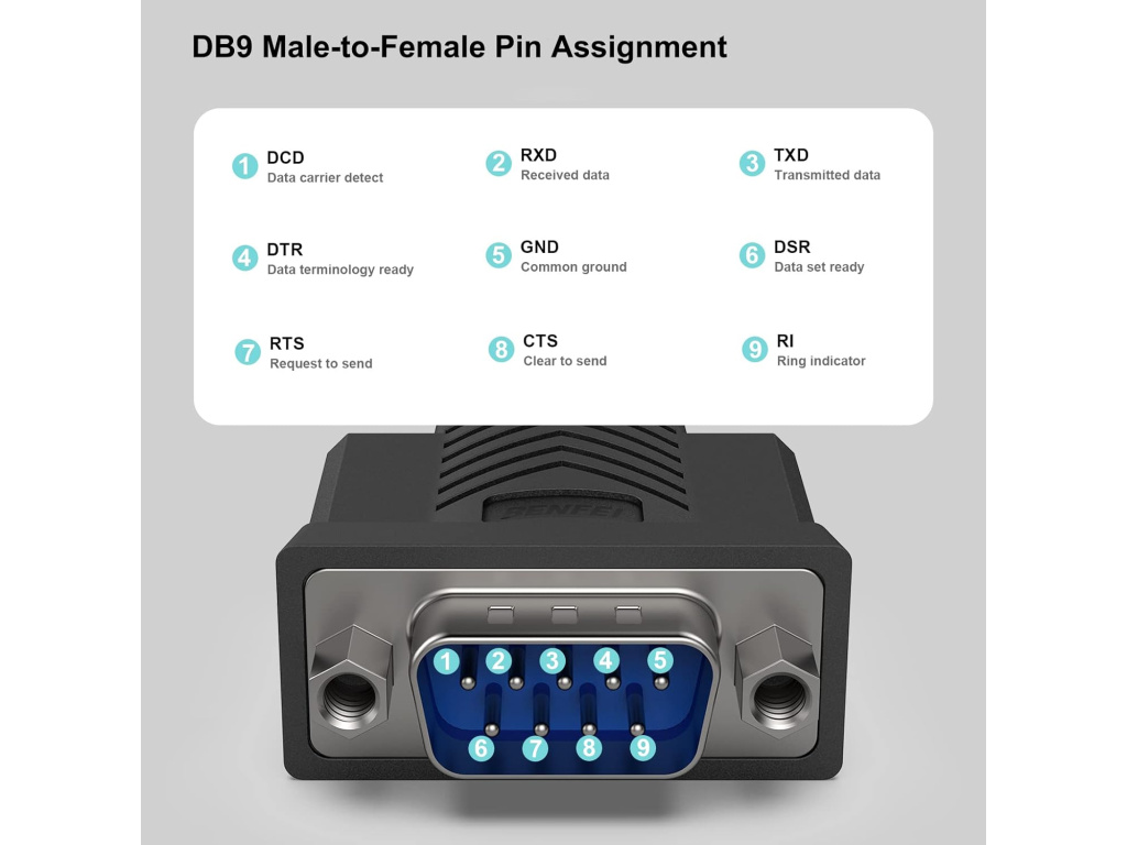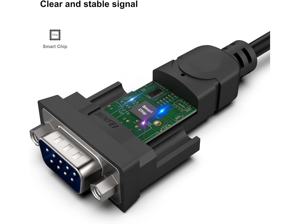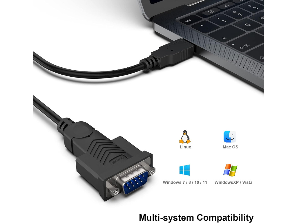 BENFEI USB na sériový RS-232 adaptér (samec, 9-pin, 1,8 m) je spolehlivým řešením pro připojení zařízení se sériovým portem k moderním počítačům. Díky své univerzálnosti, kvalitnímu chipsetu a robustní konstrukci je ideální volbou pro profesionální i běžné použití.