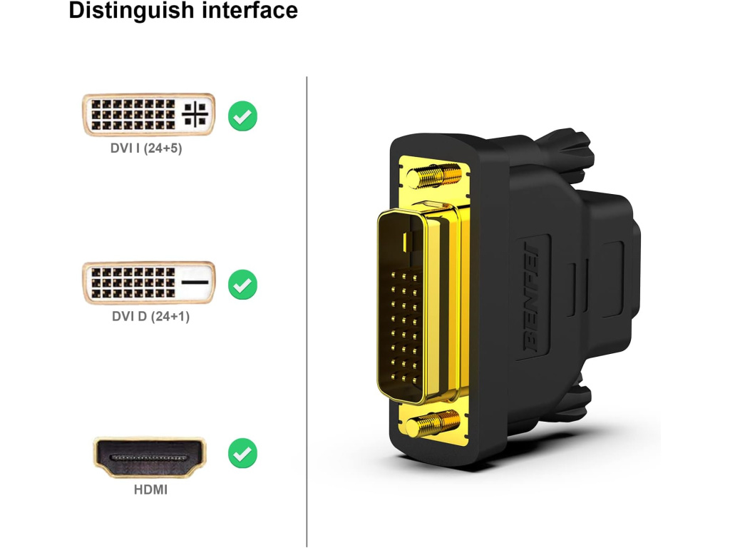 BENFEI DVI na HDMI adaptér (černý) je univerzálním a spolehlivým nástrojem pro uživatele, kteří potřebují propojit zařízení s DVI a HDMI porty. Díky podpoře Full HD, odolné konstrukci a obousměrné kompatibilitě splňuje všechny požadavky na moderní a flexibilní propojení.