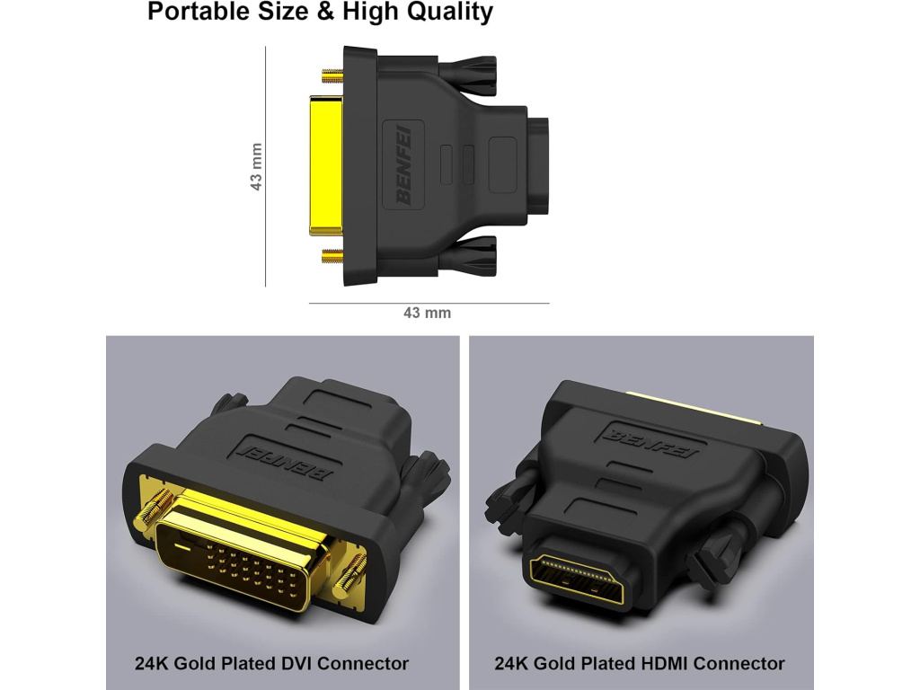 BENFEI DVI na HDMI adaptér (černý) je spolehlivým řešením pro propojení zařízení s HDMI a DVI porty. Je vhodný pro profesionální i běžné uživatele, kteří potřebují flexibilní a stabilní přenos obrazu mezi těmito dvěma standardy.