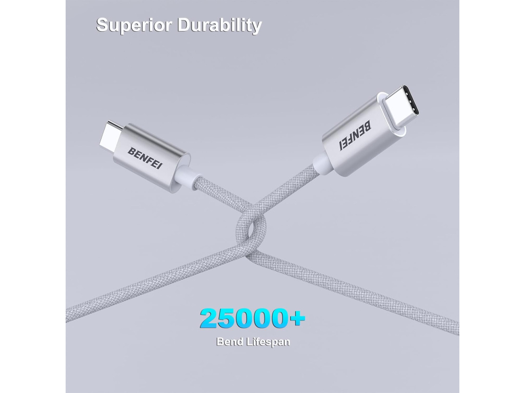BENFEI USB-C na USB-C kabel (100 W, 1 m) je ideálním řešením pro uživatele, kteří hledají rychlé nabíjení a spolehlivý přenos dat. Díky odolnému designu, kompaktní délce a široké kompatibilitě splňuje všechny potřeby moderního používání.
