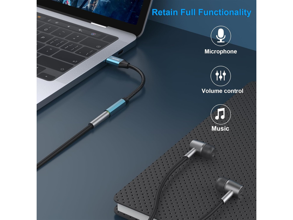 Kabel je vybaven vestavěným digitálně-analogovým převodníkem (DAC chipset), který zajišťuje čistý, detailní a vyvážený zvuk. Je ideální pro poslech hudby, sledování filmů nebo telefonní hovory.
