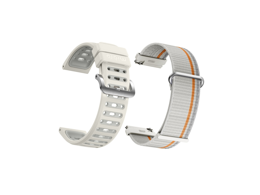 V balení najdete hned dva řemínky: flexibilní silikonový pro sport a odolný nylonový s kontrastním pruhem pro volnočasové nošení. Oba řemínky jsou lehké, pohodlné a rychle vyměnitelné díky systému rychloupínání. To umožňuje snadno měnit vzhled hodinek během dne a přizpůsobit je jak náročnému tréninku, tak běžným aktivitám. Hodinky tak získávají skutečnou univerzálnost.