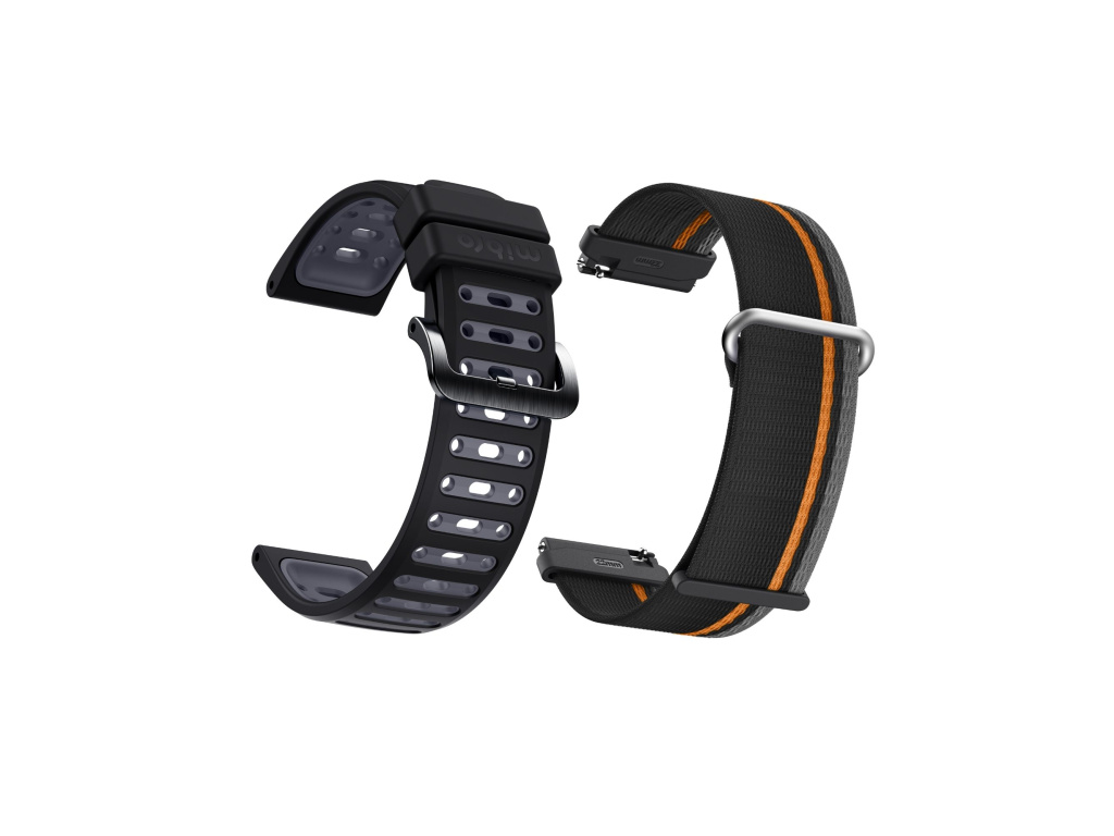 V balení najdete hned dva řemínky: flexibilní silikonový pro sport a odolný nylonový s kontrastním pruhem pro volnočasové nošení. Oba řemínky jsou lehké, pohodlné a rychle vyměnitelné díky systému rychloupínání. To umožňuje snadno měnit vzhled hodinek během dne a přizpůsobit je jak náročnému tréninku, tak běžným aktivitám. Hodinky tak získávají skutečnou univerzálnost.