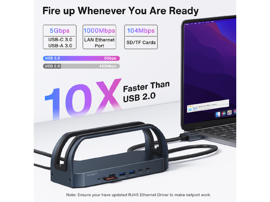 Dok dokáže dodat až 96W Power Delivery pro MacBook Pro, takže jej udrží nabitý i během intenzivních projektů a renderovacích procesů. Zátěž nemá žádný vliv na rychlost ani výkon vašeho notebooku. Každá úloha běží plynule a bez omezení, přesně tak, jak profesionální práce vyžaduje.