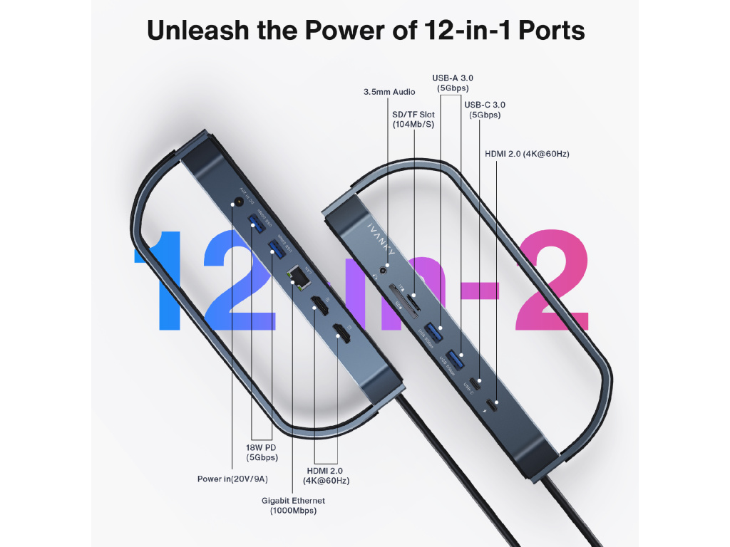 FusionDock 2 rozšiřuje MacBook na profesionální pracovní stanici s podporou dvou 4K@60Hz monitorů a 12 precizně navrženými porty. Nabízí datovou propustnost 5 Gb/s, gigabitový Ethernet, čtečky SD/microSD a univerzální USB-C/USB-A konektivitu. Výkonné 150W napájení s 96W Power Delivery zajišťuje stabilní provoz i při náročné práci. Prémiové hliníkové provedení a dokonale organizované rozložení portů dodávají celému setupu profesionální řád a špičkovou estetiku.