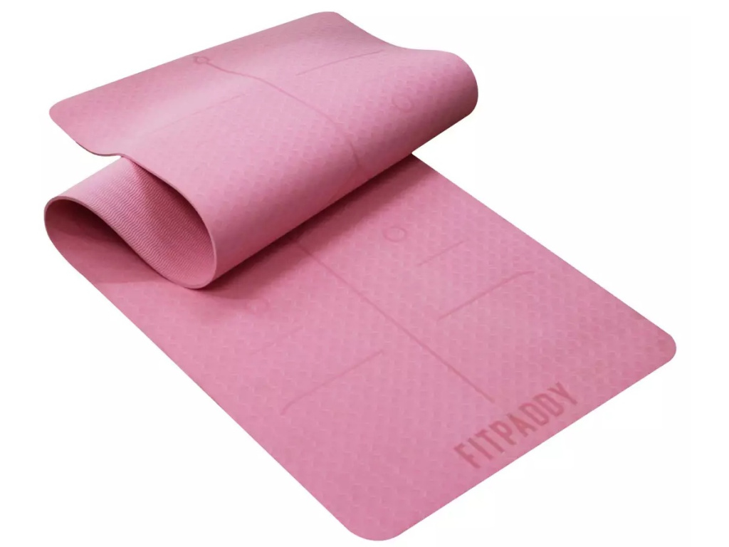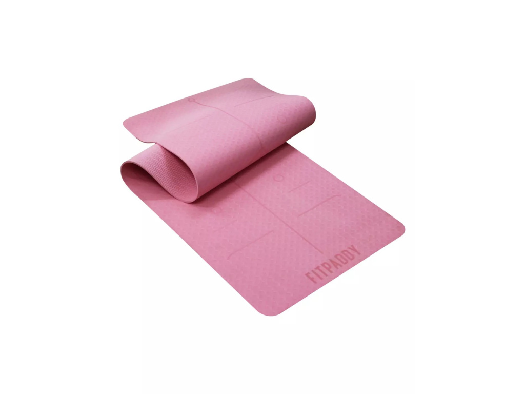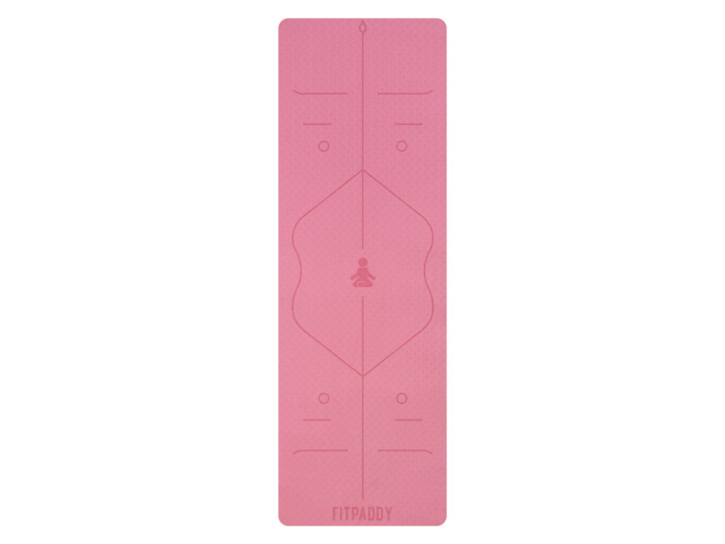 FITPADDY podložka na jógu TPE 183×61 cm, tloušťka 6 mm, s protiskluzovým povrchem a vodicími liniemi pro správné nastavení (růžová)