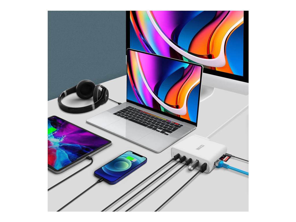 Invzi® 9v1 100W GaN II USB-C power HUB + EU/UK/AU adaptér + 2M prodlužovací kabel + USB-C kabel