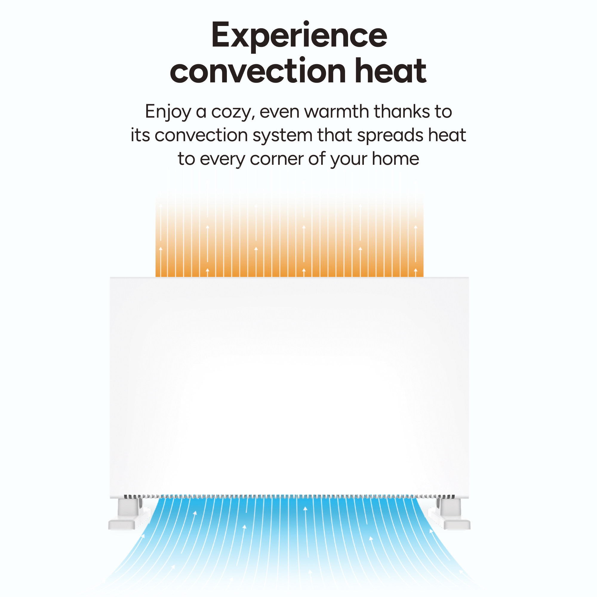 Chytré topení využívá konvekční ohřev, který nasává studený vzduch odspodu a okamžitě vypouští teplý vzduch nahoru. Díky tomu se teplo šíří rychle a rovnoměrně po celé místnosti. Konstrukce je navržena pro efektivní cirkulaci vzduchu bez hlučnosti a bez víření prachu. Ideální pro každodenní vytápění domácností i kanceláří.