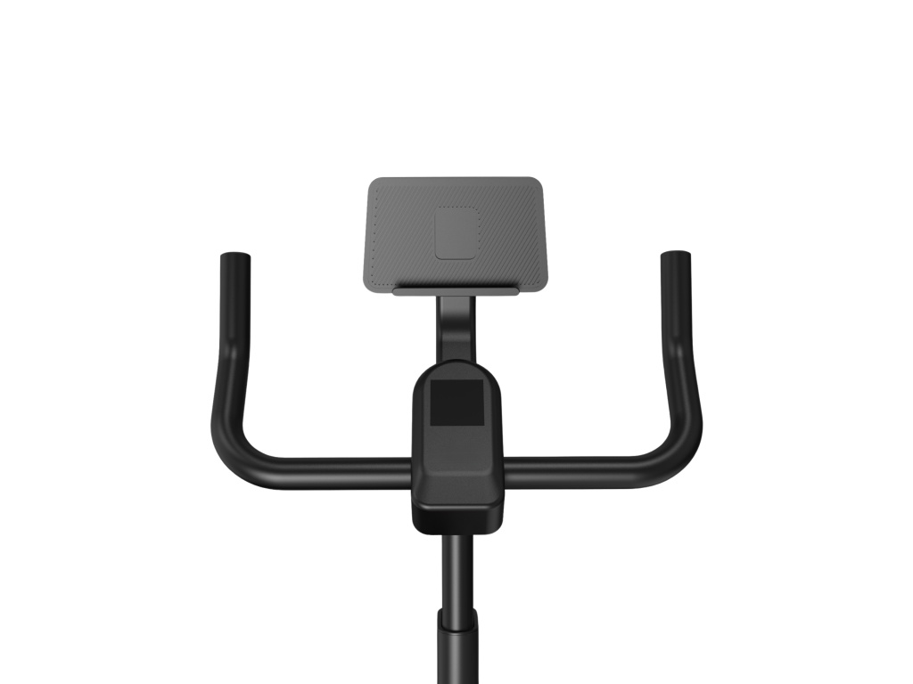 Integrovaný držák na mobilní zařízení je navržen tak, aby byl snadno viditelný a stabilní i při intenzivní jízdě. Díky optimálnímu umístění máte obrazovku stále v zorném poli – bez nutnosti se otáčet nebo natahovat. Můžete tak pohodlně sledovat trasu, tréninkový plán nebo si pustit oblíbený obsah.