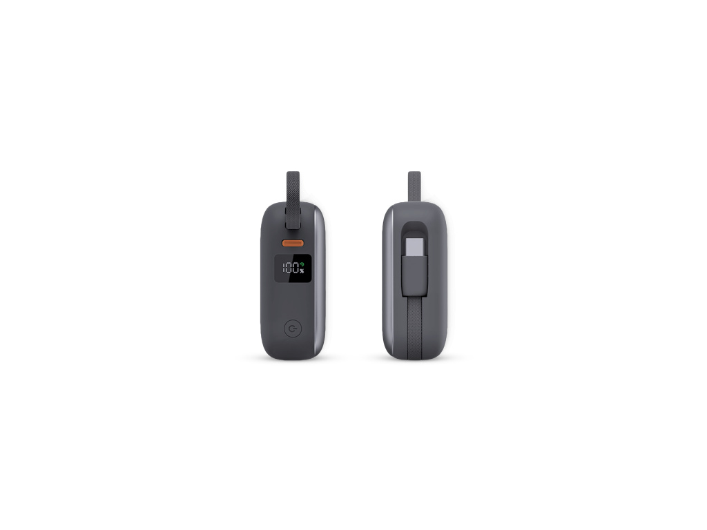 Tato powerbanka je důkazem, že výkon nemusí být vidět na první pohled. Přes svůj minimalistický rozměr v sobě ukrývá vše, co potřebujete – včetně vestavěných kabelů, displeje a tlačítka pro ovládání. Stačí ji vzít do ruky a můžete nabíjet.