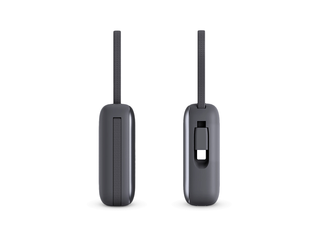 Praktické řešení s vestavěnými kabely USB-C a Lightning znamená, že jste vždy připraveni. Kabely jsou pevně uchycené v těle powerbanky a doplňuje je obousměrný USB-C port pro nabíjení samotné powerbanky i dalších zařízení.
