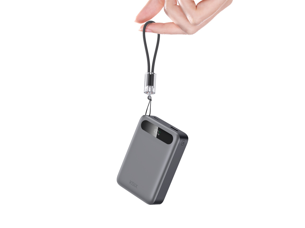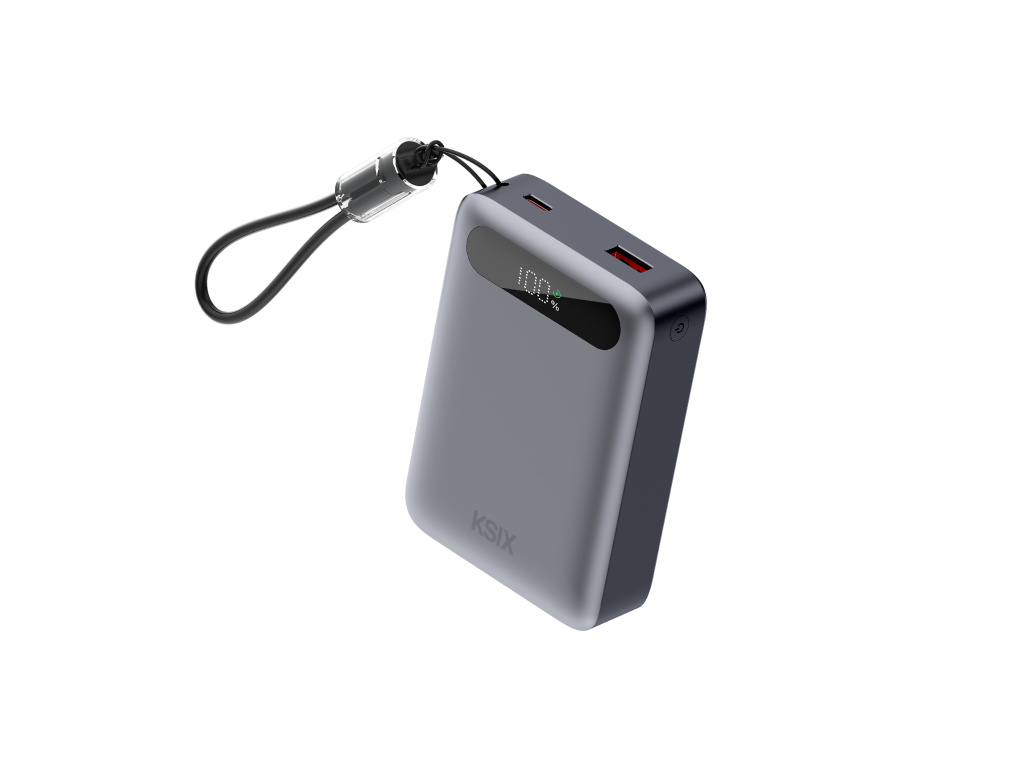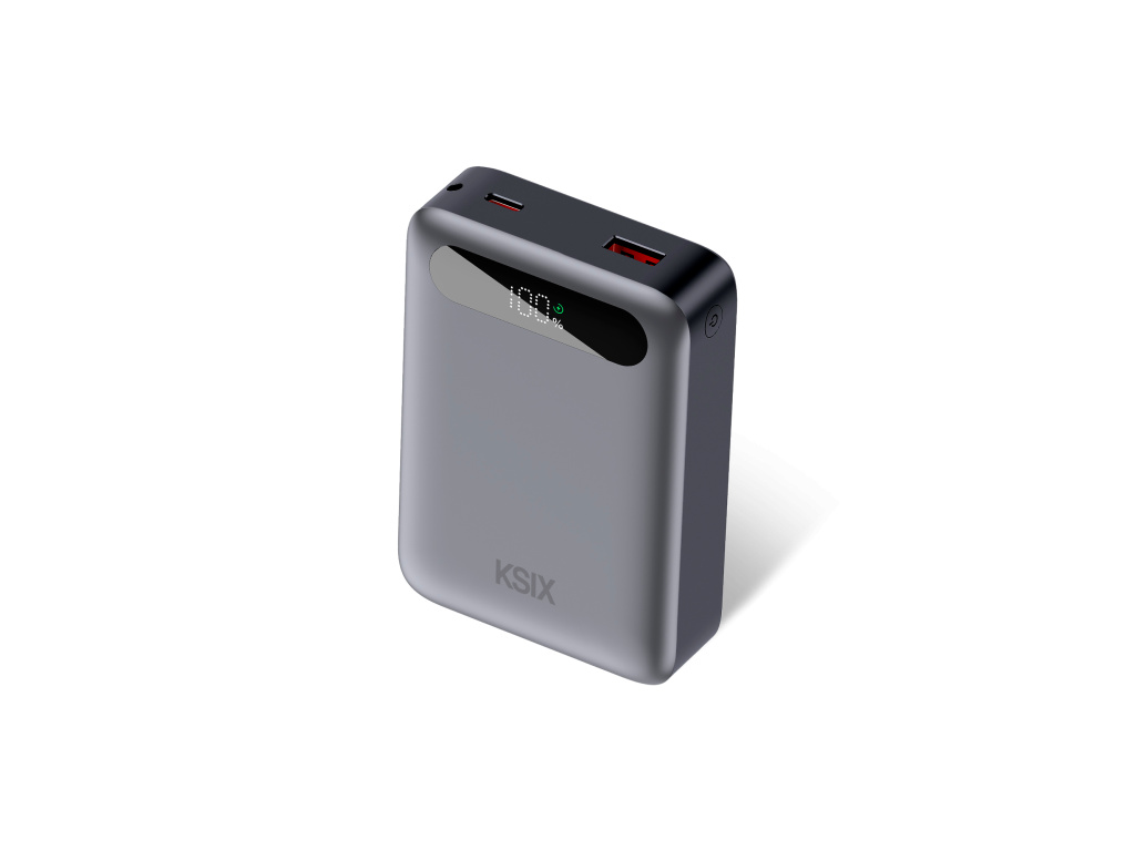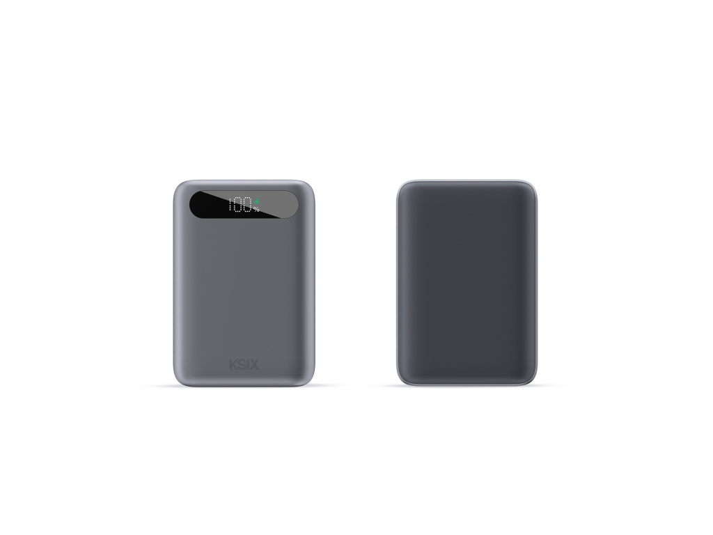 Moderní a kompaktní powerbanka KSIX zaujme už na první pohled. Elegantní zaoblený design v matné šedé barvě působí čistě a profesionálně – skvěle zapadne do pracovního dne i víkendového batohu.