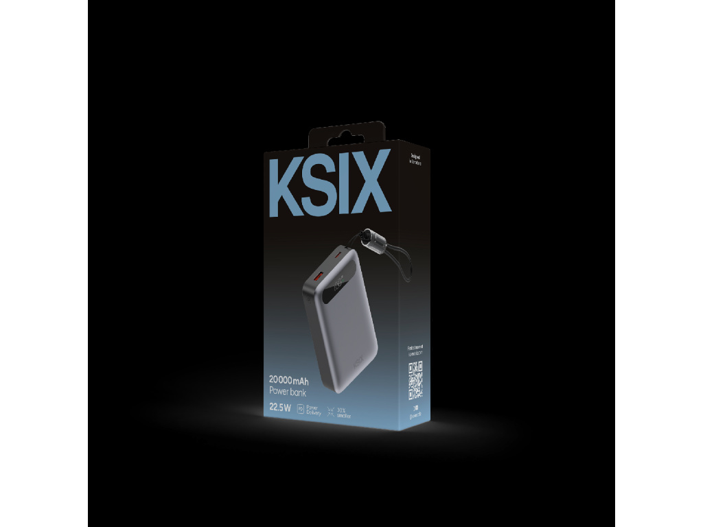 KSIX Powerbanka 20 000 mAh, PD 22,5W, LED displej, USB-C kabel s očkem