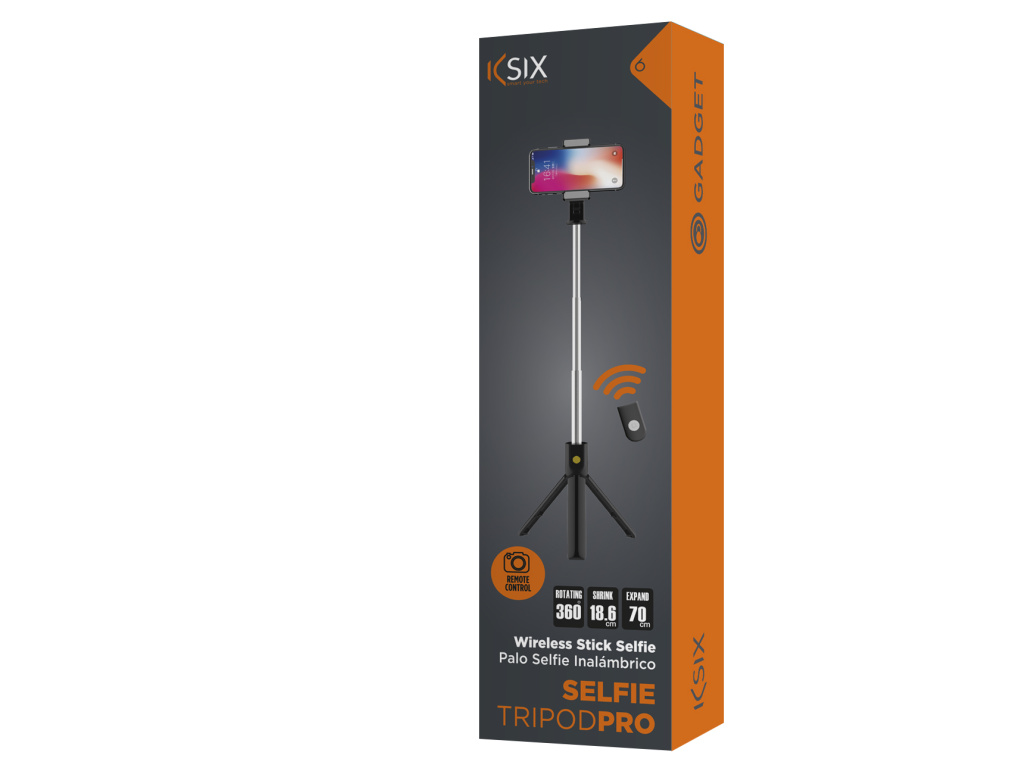 KSIX Selfie Pro stativ slouží zároveň jako teleskopická selfie tyč, kterou snadno vysunete až na délku 70 cm. Díky tomu zachytíte širší záběr bez nutnosti natahovat ruku nebo používat stativ zvlášť. V zasunutém stavu je zařízení kompaktní, při plném vysunutí ale nabídne dostatek prostoru i pro skupinové fotky, vlogování nebo detailní záběry z různých úhlů.