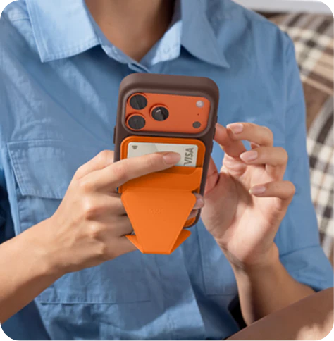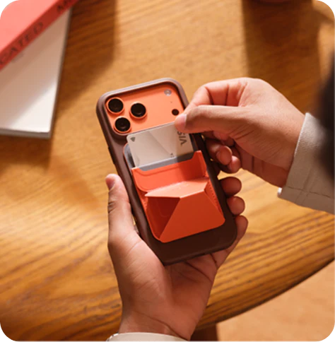 Díky ultra tenkému provedení peněženka dokonale splývá se zády telefonu. V kapse ani v ruce téměř nepoznáte rozdíl, přesto máte stojánek i karty stále u sebe. Je to definice funkčního minimalismu, který nepřidává zbytečný objem a zachovává elegantní linie vašeho iPhonu.